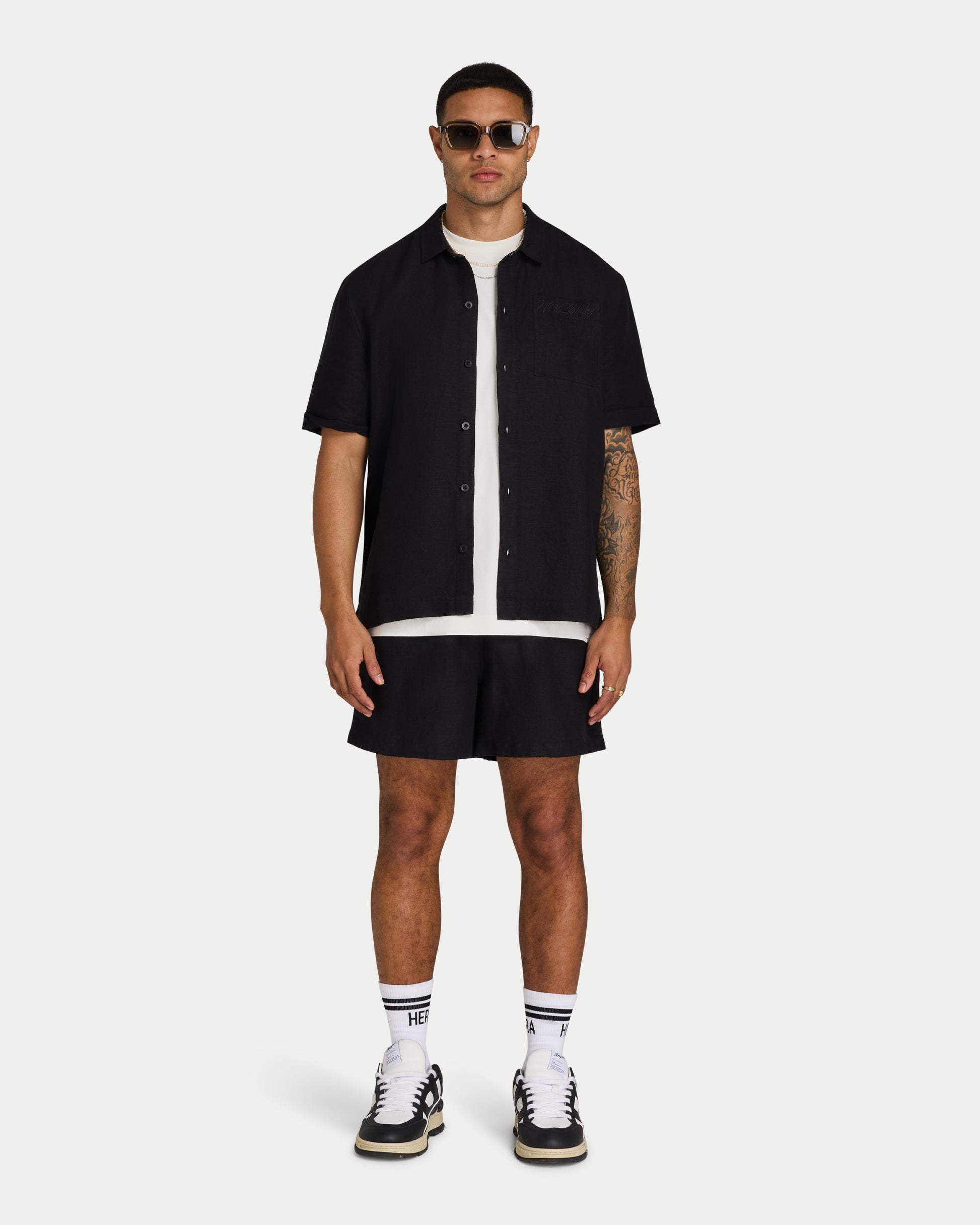 The Linen Shirt is made from a lightweight, breathable cotton linen mix for a soft and summery feel in our relaxed fit. The logo is tonal embroidery for a subtle but premium finish.