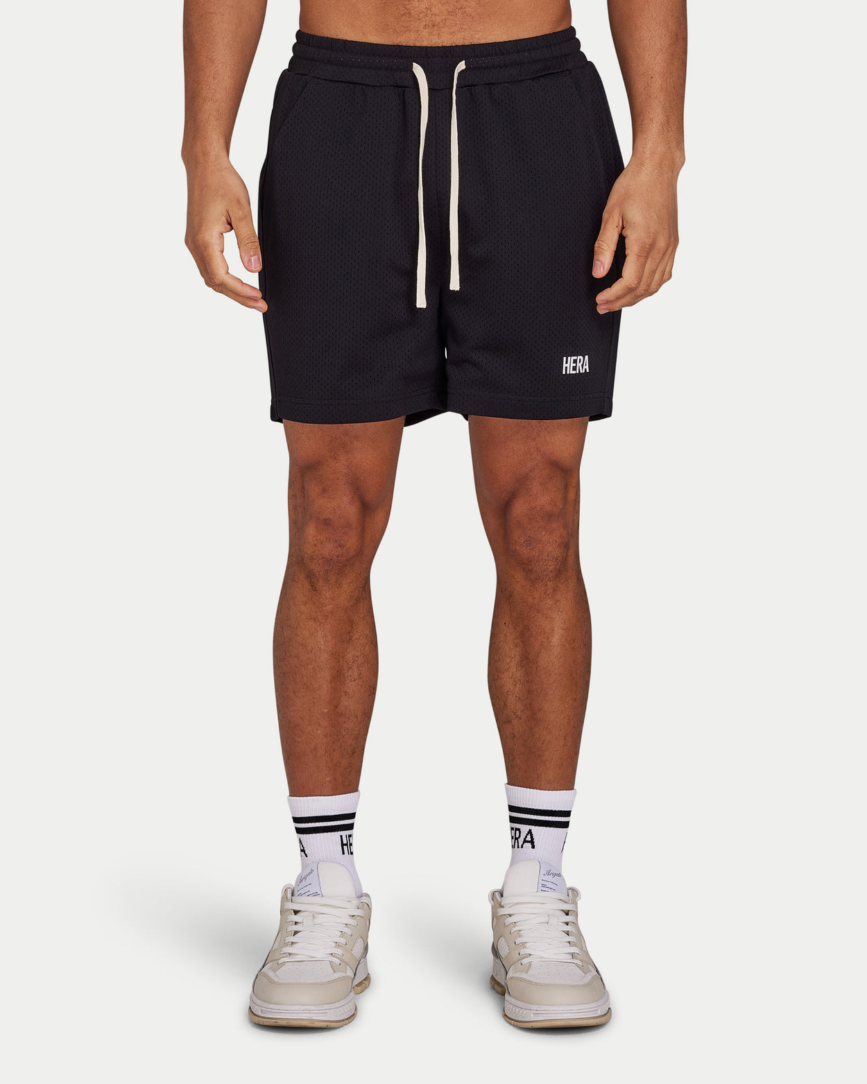 الشورت الشبكي مصنوع من نسيج شبكي مزدوج الطبقات مسامي لتوفير أقصى درجات الراحة. يتميز بتصميم شعار مطرز. تتم طباعة الشعار للحصول على الحد الأدنى من النهاية.