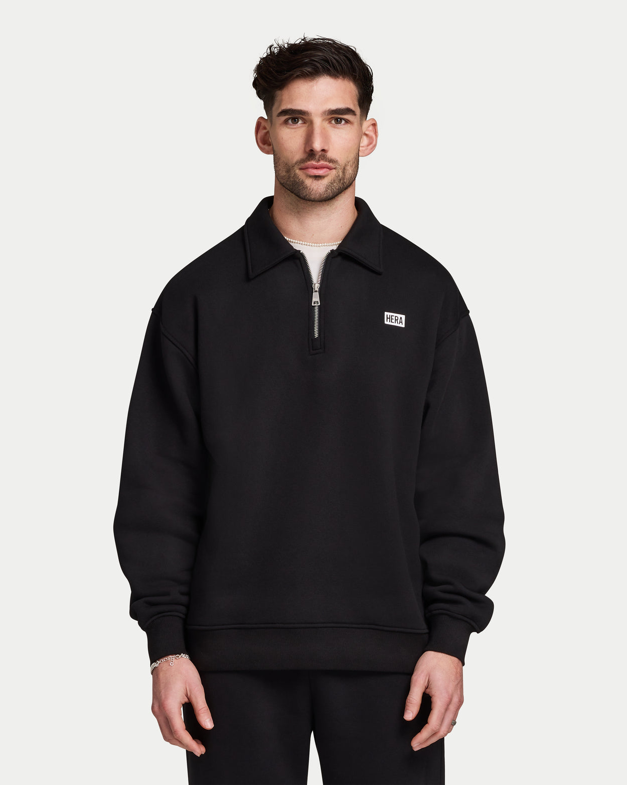 The Collective Oversized ¼ Zip Sweatshirt is crafted from a premium mid-weight, brushed-back fabric, delivering exceptional softness and comfort in our signature oversized silhouette. Designed with a clean collared ¼ zip neckline and completed with a raised rubber logo for a subtle, elevated edge.