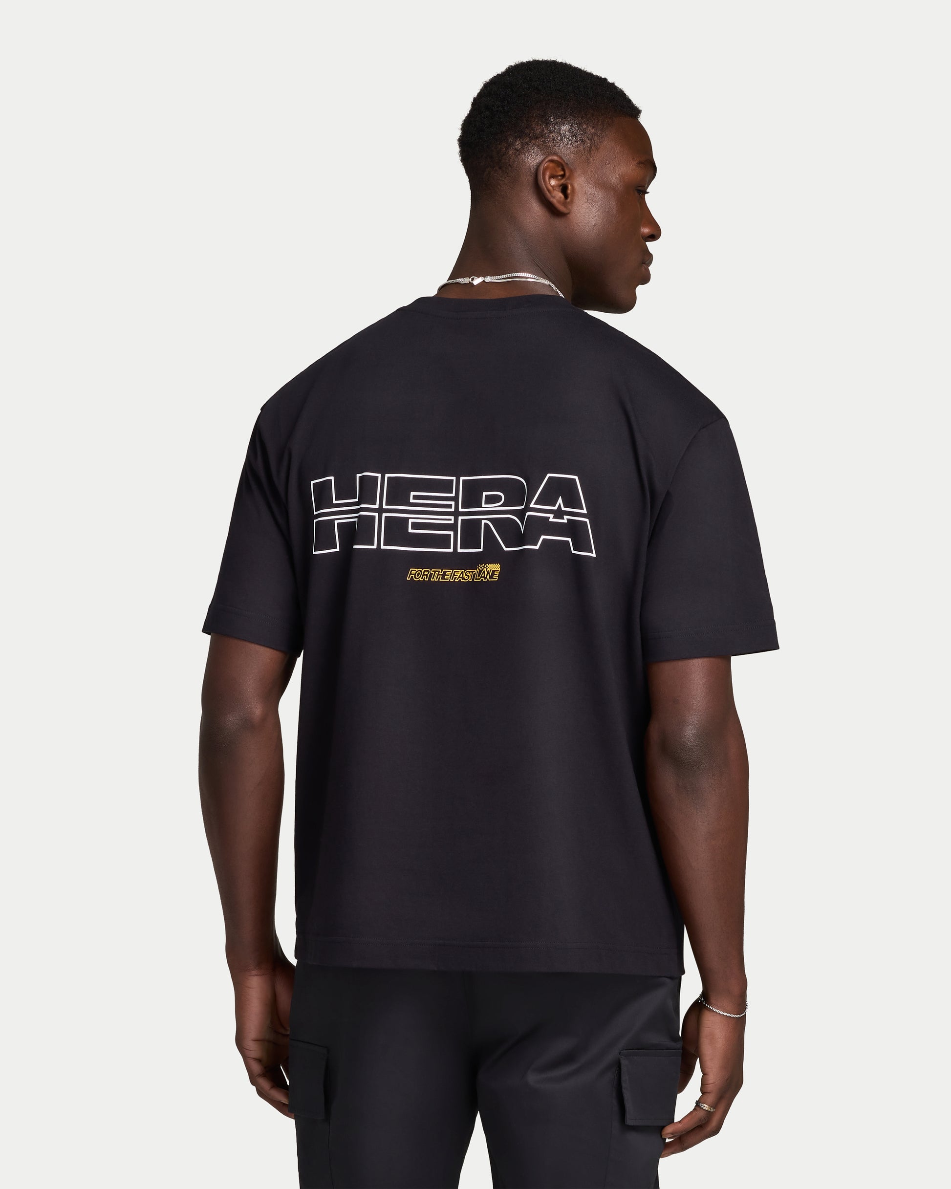The Racing Track T-shirt is created in our signature oversized fit, made in a soft and medium-weight, cotton Jersey. Featuring a printed logo design on the back.